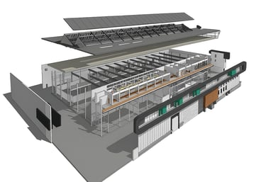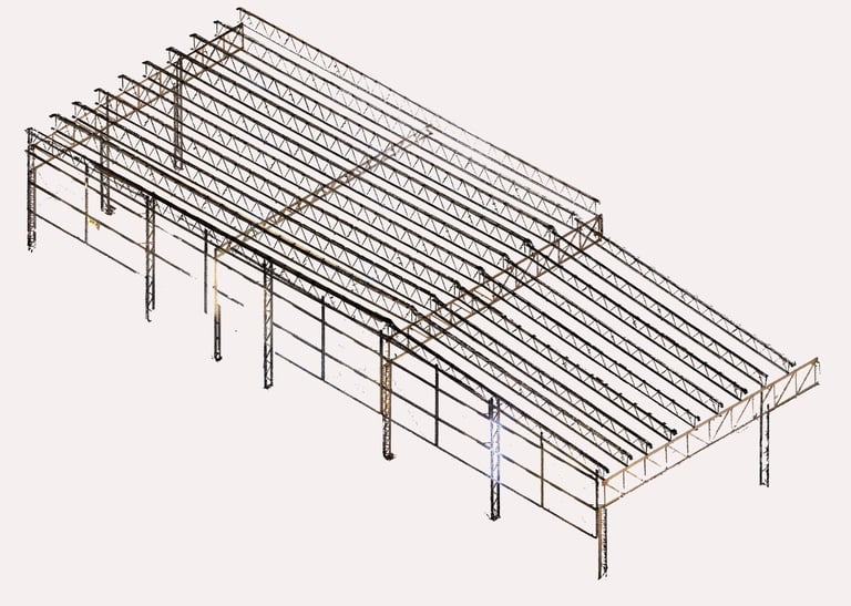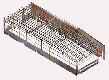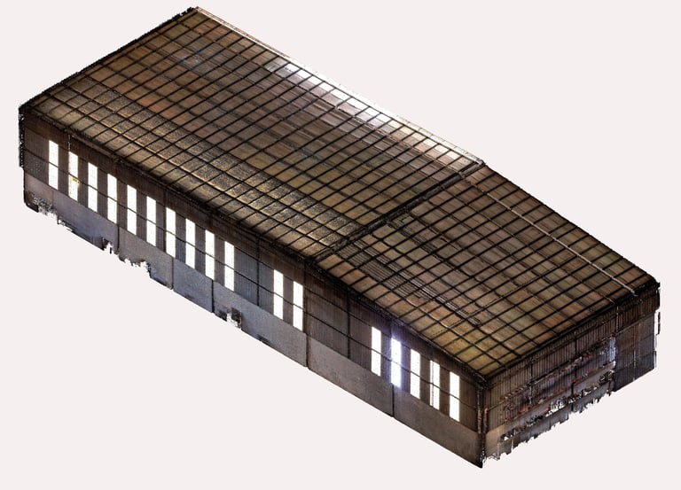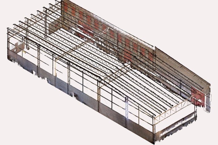 Si a partir de la nube de puntos transformamos esa información como la base de un modelo BIM, esta reproducirá con precisión la geometría real de la nave, permitiendo trabajar sobre una base confiable para diseñar, calcular o coordinar.